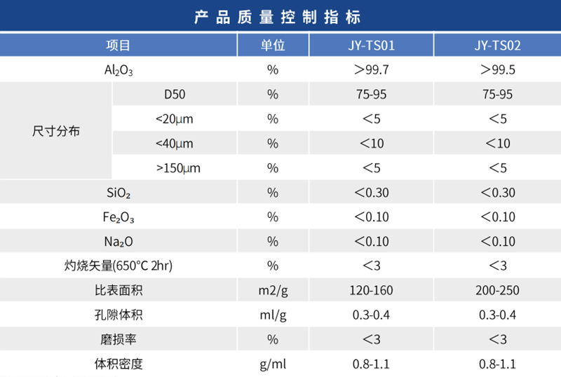 產品簡介:JY-TS脫氫催化劑載體具有低磨損、粒徑分布集中等特點,產品粒徑分孔容、比表面積等指標可根據要求調整,通常用于流化床。